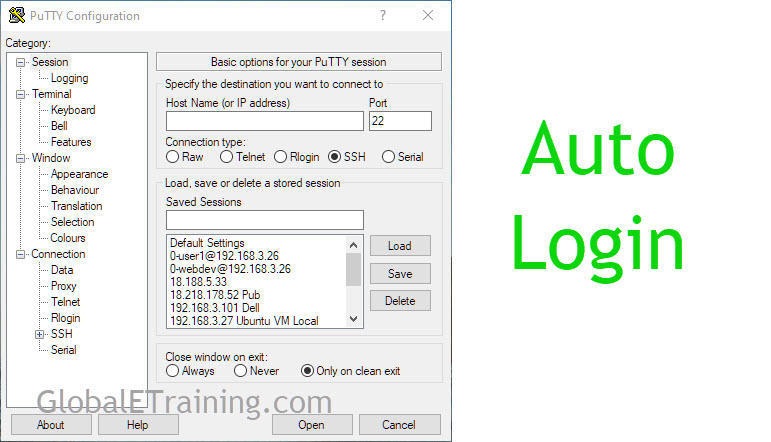 required to connect to the same Linux/Unix server with different credentials. Today the least, we get confused. To mitigate this, you can take advantage of the auto-login feature of Putty. Applying some customization with font color will help you immensely.